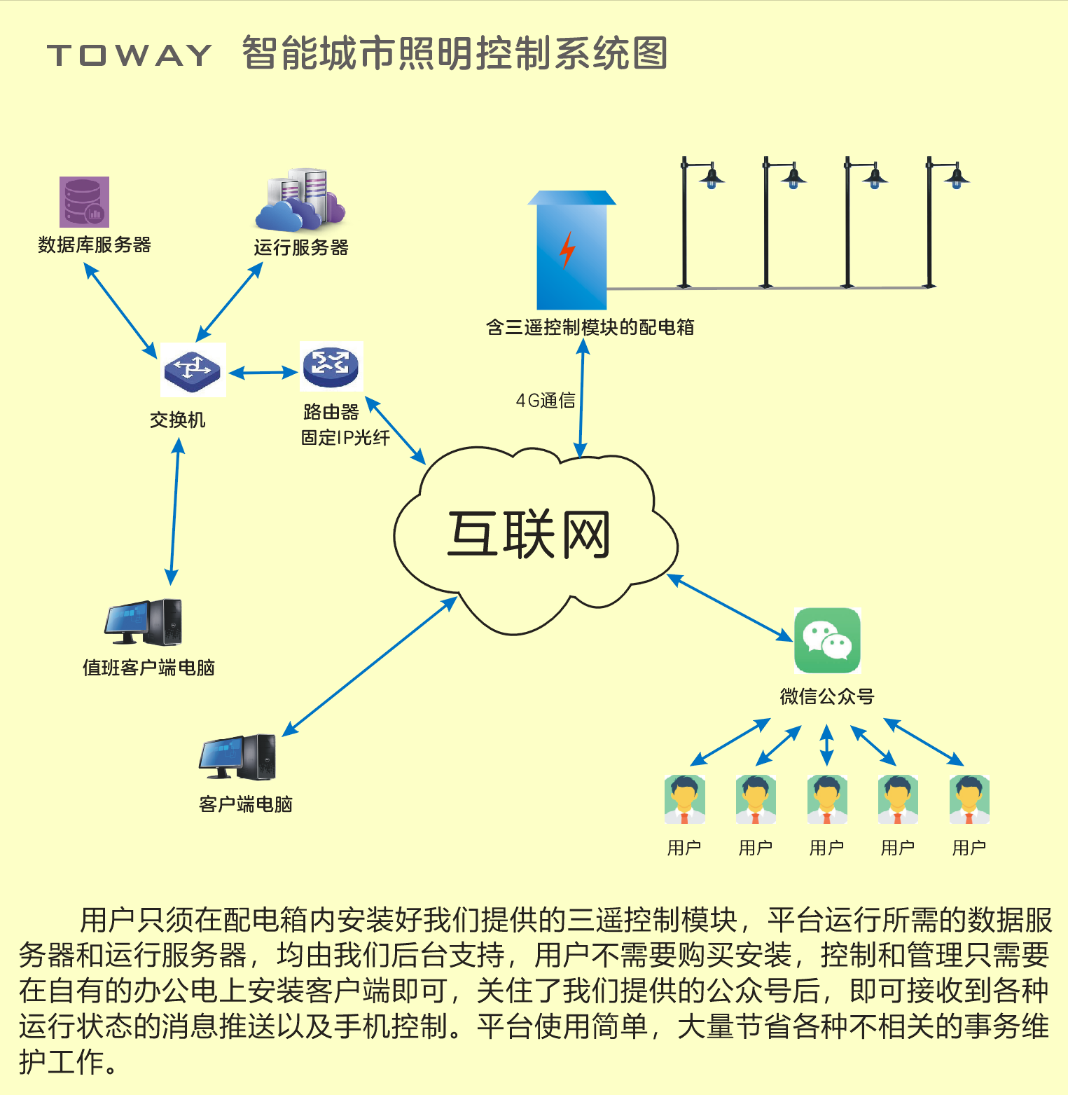 1:每個(gè)路面配電箱提供一個(gè)三遙控制模塊,根據(jù)數(shù)量結(jié)算,每臺(tái)首年收費(fèi)350元,次年開始每年250元,簽三年合同,內(nèi)置物聯(lián)網(wǎng)卡,流量費(fèi)由我方承擔(dān)